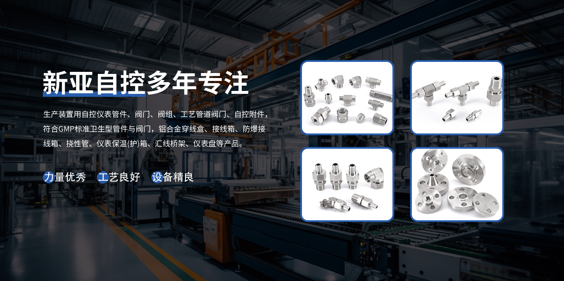 揚中新亞自控工程有限公司,成立于1995年,地處繁榮富庶的長江金三角,座落在聞名遐邇的水上花園城市、生態示范區一揚中市。東傍上海和蘇、錫、常,西臨南京,南屬鎮江,北望揚州,環境優美,交通便捷,區域位置良好。公司以市場為導向,引進現代化技術,發展壯大本土企業,生產與歐、美、國產等裝置用自控儀表管件、閥門、閥組、工藝管道閥門、自控附件,符合GMP標準衛生型管件與閥門,內燃機配件、儀器儀表、橋架、五金、橡膠制品等產品。